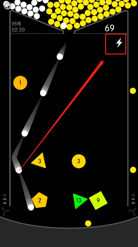 闲弹球速度太慢的时候可以点右上角的这个闪电图标,即能给球加速。提高游戏效率。