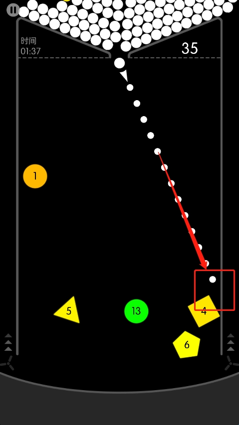 几个方块围起来时,利用墙壁,将球弹到它们的包围圈内,能够较有效率的消除。