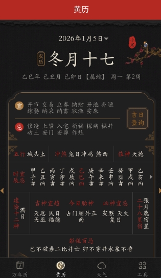 4、传统黄历宜忌:关注每天该做和不该做的事,事事顺利