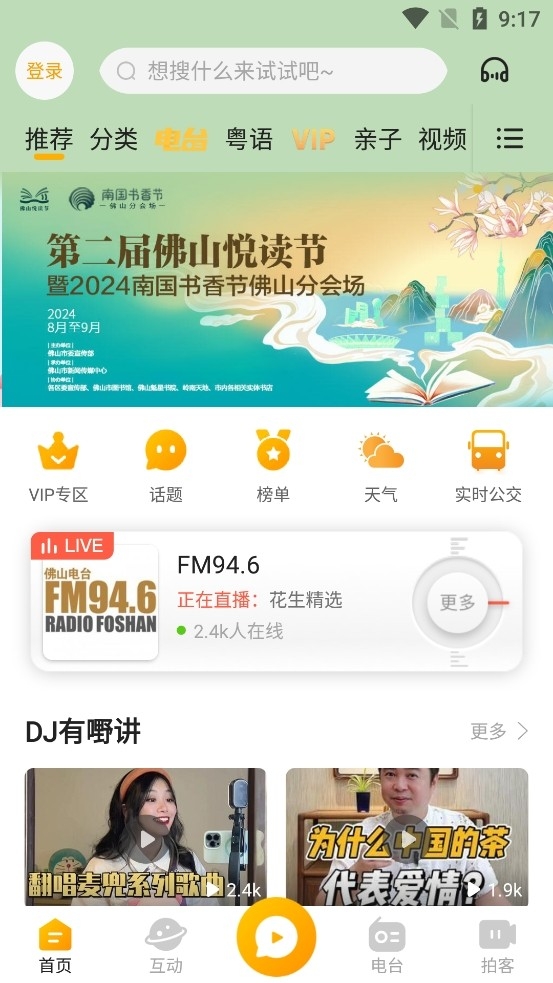 【直播互动】支持佛山电台等珠三角多套频率全天候直播和七天回放;