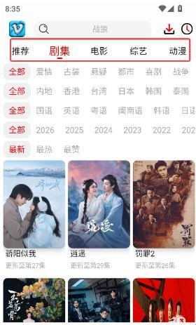 2、点击上方的选项即可切换分区,在分区中能够自由筛选想看的剧。
