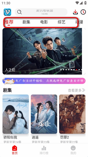 3、点击顶部的搜索框,输入关键词即可找到对应的剧。