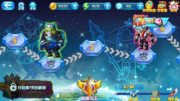 2、该游戏设立为闯关制,玩家可通过挑战其中的关卡来收集更多英雄碎片,从而能合成更多的英雄。而在往后的某些关卡中还有Boss把守。
