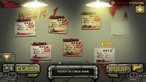 游戏中也有很多武器让你选择。刚开始的时候只有2把手枪,一把是单点发射,另一把则是五发连射。小编先对五发连射这把手枪进行升级,因为攻速较快,子弹的密度也大,僵尸也就更容易击杀。后面的武器还需要大家花一定的时间,达到相应的等级来解开。