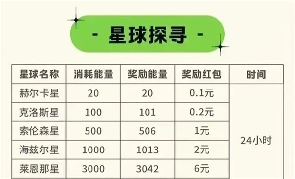 消耗能量“穿梭星球”,边玩边赚!完成挑战即可收获额外能量+奖励 ,24小时限时任务(如“海兹尔星”)更有翻倍惊喜~