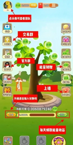 通过趣味试玩、日常互动,无需投入也能攒能量!(此处可结合实际界面,补充“完成任务、互动小游戏”等轻量描述,如:“参与试玩任务、给果树浇水施肥,轻松薅能量,躺着攒资源~” )