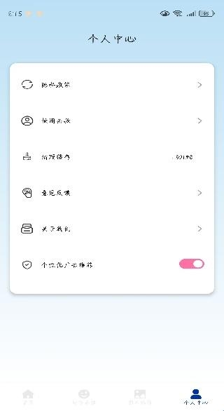 4、点击进入个人中心,使用过程中有任何问题可以反馈。