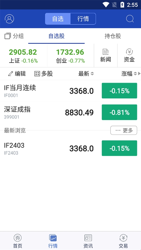 3、在“自选”中,可以观看一下其他支的行情,然后再选择购买;