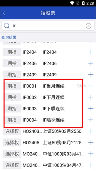 1、如果用户知道自己选购的股指期货产品代码可以在搜索页面下进行直接搜索,如果是想购买其它行情好的股指期货,可以在搜索框输入股指期货代码前两位,来进行选购,一般股指期货的代码是由英文字母和数字组成的,具体含义如下: