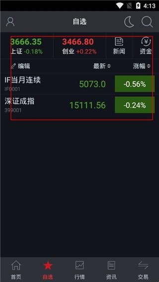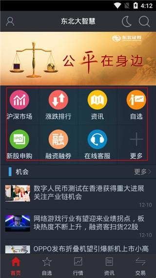 4、在“资讯”中,也是可以选择自己感兴趣的资讯进行观看,其中包括:快讯、财经、机会、新股以及更多等;