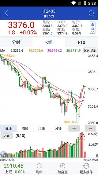 4、此时用户不仅可以查看到整个股指期货走势图,而且还可以点击F10查看非行情的基本资料,例如:交易所名称、交易品种、手续费和保证金等信息