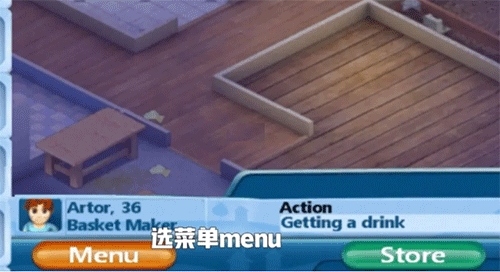 食物买了放在餐厅桌子上,小人会自动整理开始家具拖到大门口可以卖掉。