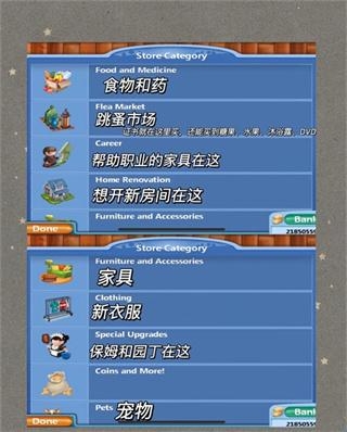 玩家可以扩展和改造家园。通过赚取的钱,玩家可以购买家具、装饰品、升级房屋,并创建一个理想的居住环境。随着家庭成员的成长,玩家可以为他们设计适合的房间(如婴儿托儿所、儿童游戏室、家庭影院等)。