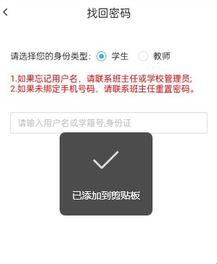(1)如果忘记用户名,请联系班主任或学校管理员;