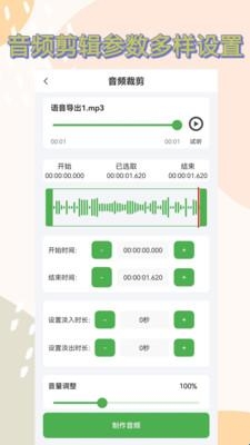 3.多种音频工具,如语音拼接、音频剪辑、音频提取、音频转码等。