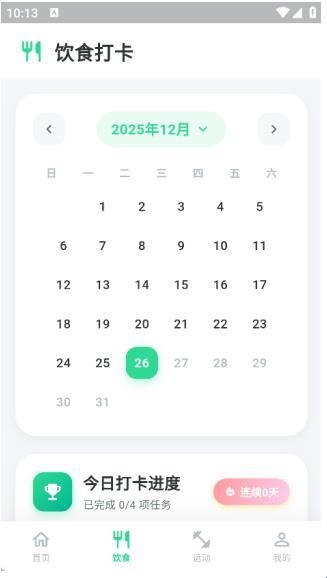 2、在饮食页面中可以了解各类饮食打卡,还可以了解今日打卡进度;