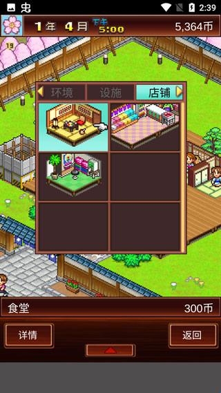 6、点击店铺,可以建造食堂、游艺机、小卖铺等等