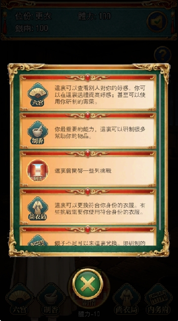 2、六宫可以查看别人对你的好感,在这里可以通过送礼来提高好感度。