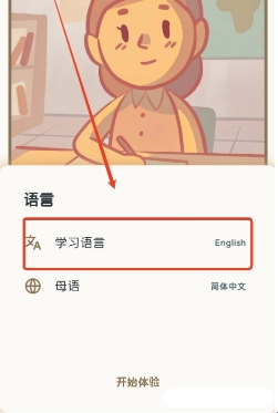 2、在新窗口中点击“学习语言”,进行设置。