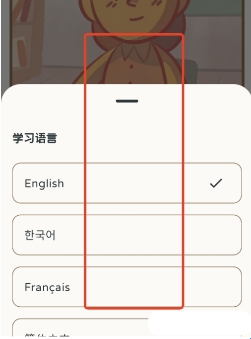 3、从系统提供的语言列表中,点击任意一项作为新的学习语言。
