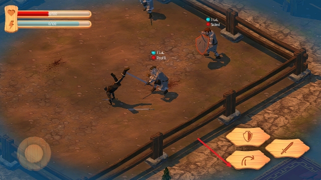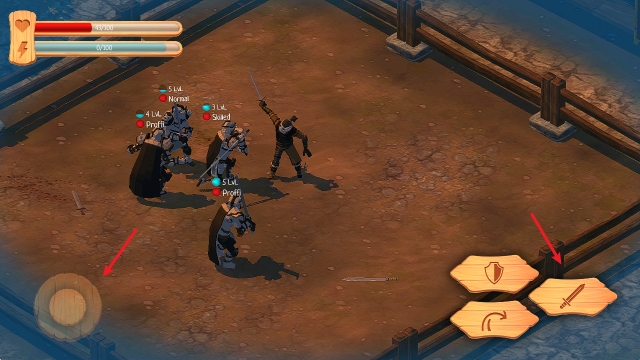 1、拖动左侧摇杆进行移动,点击右侧剑按钮即可进行攻击。