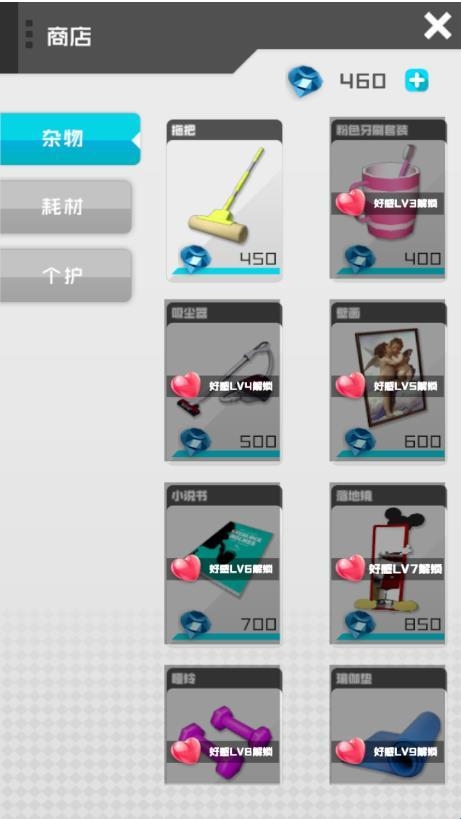 商店中还为你配备了大量的生活消耗品,家具百货等物品,有的是任务需求,有些可提升你的魅力。