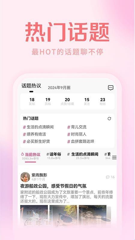 1、妈妈圈:火爆的话题圈子,育儿、时尚、扮靓、瘦身、情感、婆媳、打击小三,劲爆的自传连载,两性健康,让你看得上瘾!