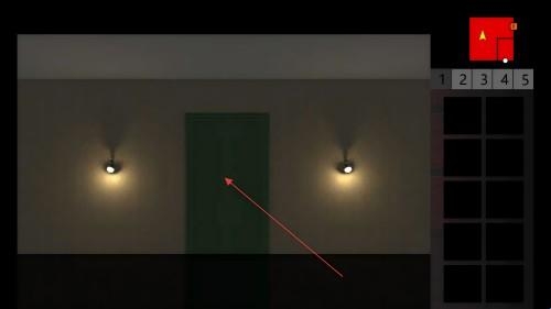 2、在初始场景,点击绿色门,探索新区域,寻找解谜线索。