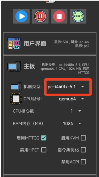 4、点开主机这一栏,再点击机器类型这个倒三角,选择【pc-i440fx-5.1】。