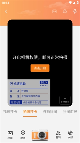 软件提供了强大的水印相机,方便用户进行拍照打开,更好的进行水印打卡记录。