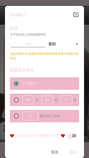 小样制作版连点器6.0是一款游戏专用的自动连点器。软件提供单点模式、多点模式、同步模式等连点方案,同时用户也能创建新的配置,自定义点击延迟时间、滑动持续时间等设置,解决用户需要连续点击的所有场景问题。软件无需开通root权限即可稳定运行,免费使用所有功能,有兴趣的朋友们快来下载吧。
