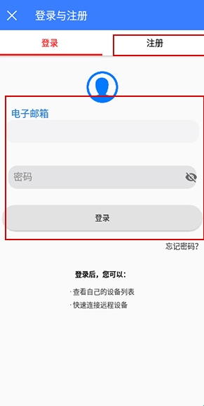 1、在本网站下载并安装EV远程协助app,进入软件首页登录或注册一个账号