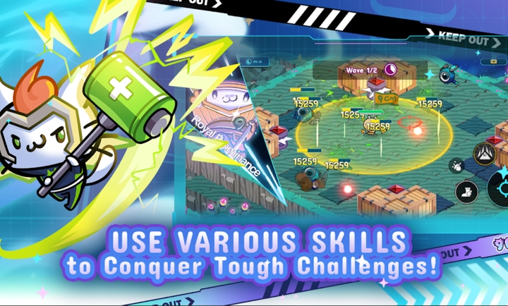 2、每关可以选择三位角色加入到战斗,灵活切换不同的猫猫特工来击败不同类