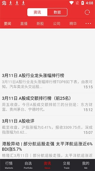 3、自选股页面