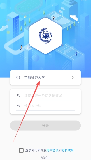 2、选择自己所在的高校,确保连上校园网的情况下,输入统一身份认证账号密码登录创高体育App。