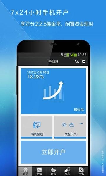 手机开户:支持7x24小时手机开立证券账户,享受低佣金率炒股、基金交易。