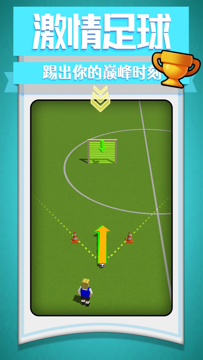 2、按提示拖动球员,选好踢球方向与力量,瞄准球门区域发射足球。