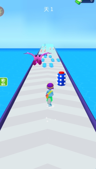 2、随机打开其中一个,飞行怪兽与你一起跑酷,收集各种能量避开障碍物,冲过这座桥前往下一关。