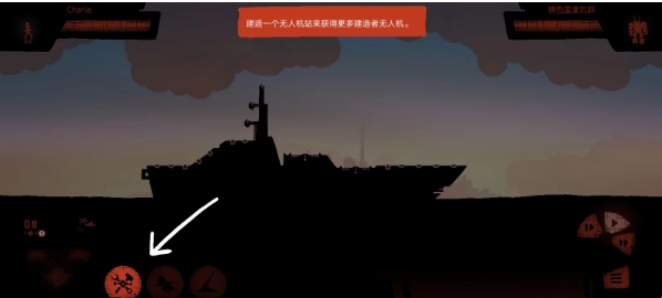 3、首先点击下方箭头所示图标建造一个无人机站。