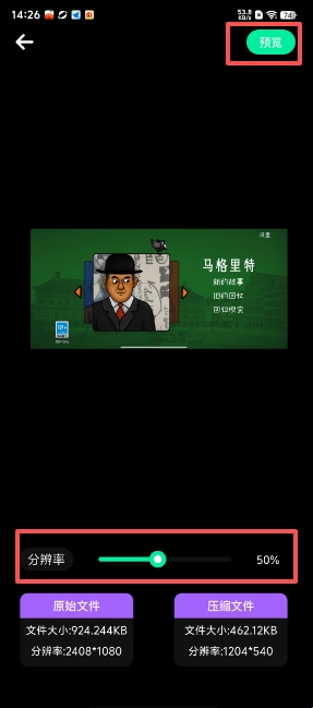 第四步:选好图片之后,选择分辨率并找到页面上的“预览”