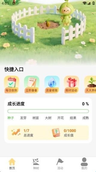 2、每日签到打卡,轻松赢取初始水滴与肥料,为你的流量树成长奠定坚实基础。