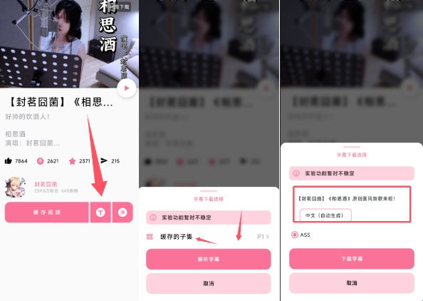 该版本支持了选择视频子集缓存字幕,对于有子集的视频大家可以选则子集,选则后点击解析字幕,会选出所有存在的字幕,用列表展示,默认选中第一个字幕,大家可以在解析结果页面选则字幕下载。