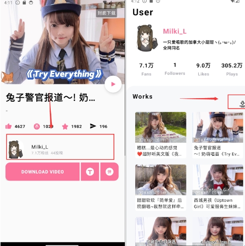 在新版本中,用户可以点击视频信息下方的UP主头像,以访问UP主的个人主页。在视频列表的右侧,将找到下载图标,点击后即可进入批量下载界面。