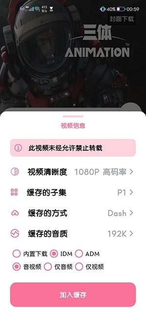 音视频分离下载,可单独保存音频,支持自定义缓存路径与断点续传。