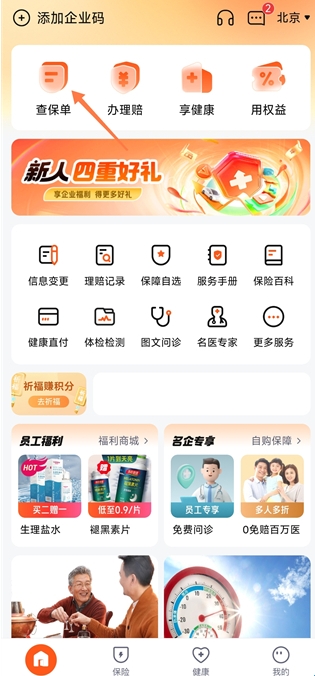 健康账户健康商城、线上医院、免费问诊等,为企业员工提一站式位健康服务,守护员工身心健康。