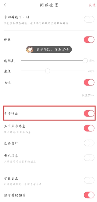3、将章节评论的开关关闭即可,后续在观看完一章后见不再显示章节评论。