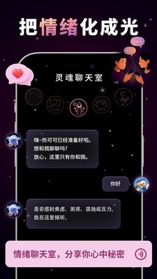 1.感受与表达:在 AI情绪聊天室里说出此刻的心情,或通过星盘/塔罗提出你的问题。