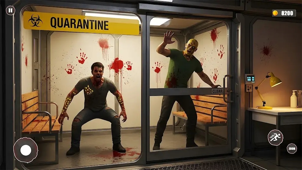 4.进入隔离区,两名感染者被困在玻璃门后,他们表现出攻击性行为,试图冲破隔离。玩家需保持警惕,防止感染扩散,并寻找安全撤离路径。