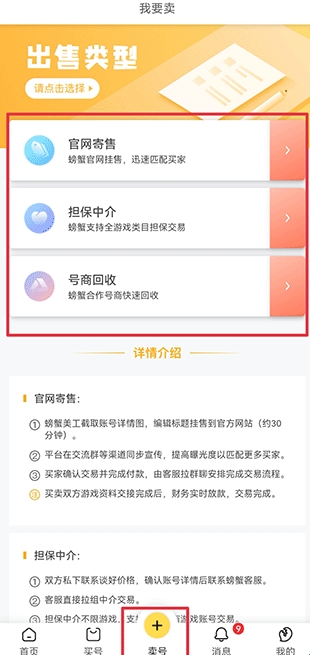 螃蟹交易平台app卖号流程