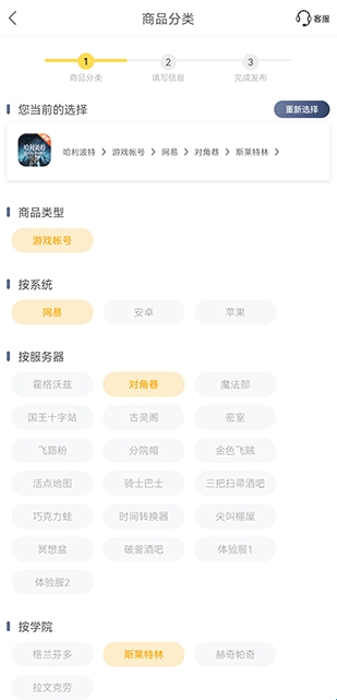 1、打开螃蟹账号代售app,在卖号界面中选择你要出售的类型
